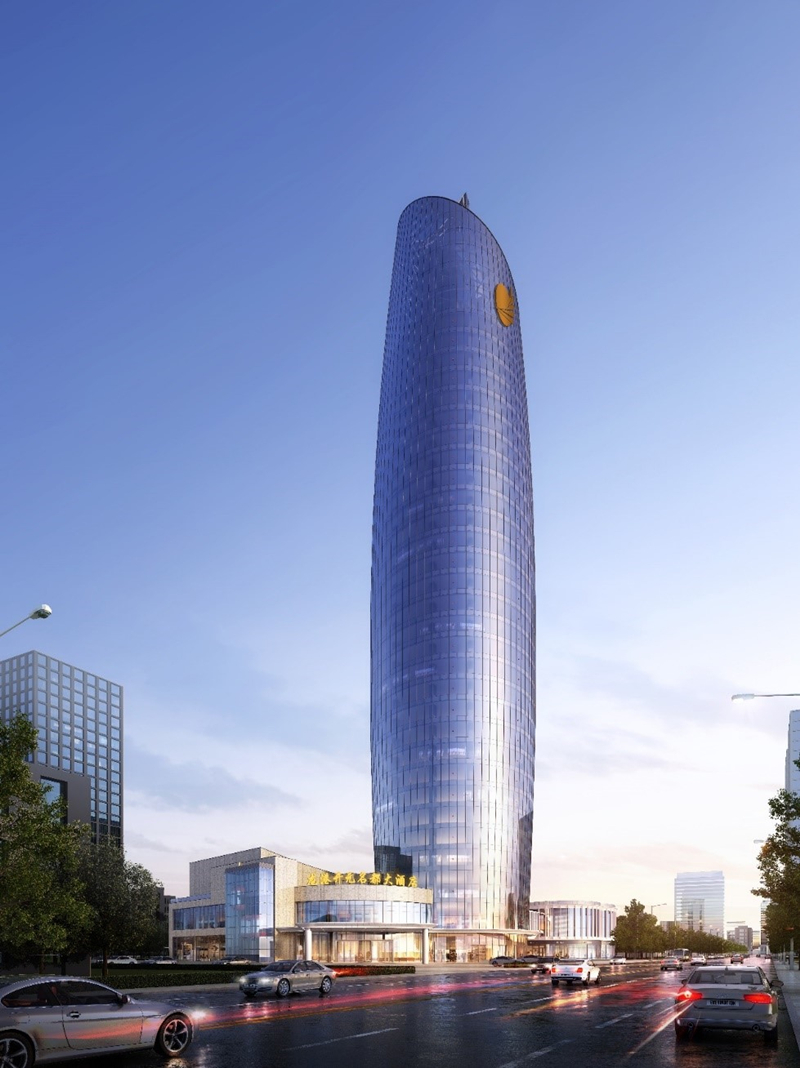 中國電建大灣區科創中心基地位于廣東省廣州市花都區,是由中電建(廣州)城市投資發展有限公司投資開發建設。該項目幕墻形式主要包括玻璃幕墻、鋁板幕墻等,總建筑面積約為62000平方米,幕墻面積38000平方米,建筑高度為162 1米。該項目是一棟超高層辦公樓,建成后將打造成為具備總部基地的地標性建筑。海口濱海新天地商業綜合體 位于海南省海口市,是由